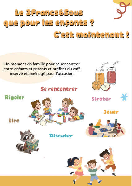 https://forms.gle/jPS31mLYqN5Qxpiu9Ce formulaire est destiné à recueillir vos impressions, attentes et commentaires ou critiques (positives et négatives) en lien avec les différentes propositions qui vous sont faites au 3 Francs 6 Sous. Ce questionnaire, bien qu'un peu long, ne prend que quelques minutes à remplir. Sachez qu'il est important pour nous pour savoir comment vous percevez le lieu et donc comment nous pouvons agir pour le rendre plus conforme à vos souhaits.
